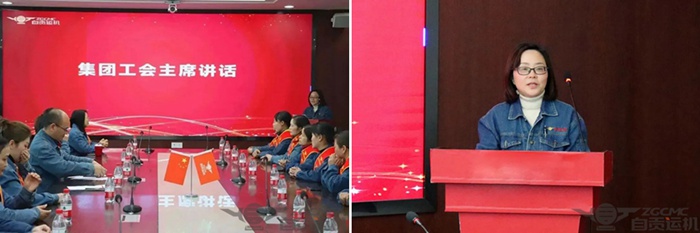 集团工会女职工委员会主任郑晓红,宣读《运机集团五一巾帼标兵表彰决定》。