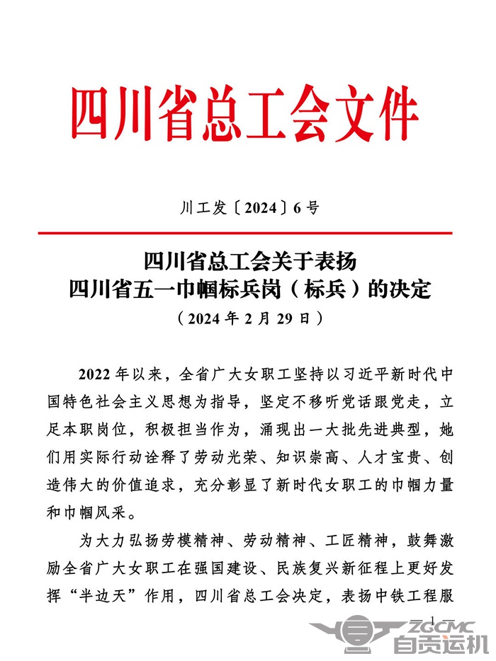 喜报!运机集团板焊车间巾帼焊工班获“2024年四川省五一巾帼标兵岗”荣誉