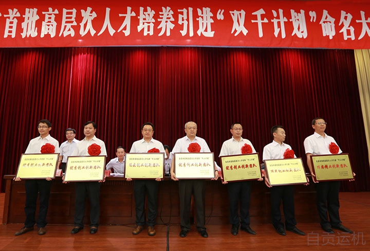 2015年6月3日上午,自贡市首批高层次人才培养引进“双千计划”命名表彰大会在市委会议厅召开。自贡市委书记雷洪金,市长刘永湘、市人大常委会主任陈华、市政协主席潘泽金出席会议并讲话。自贡市委组织部部长李国贵主持会议并宣布表彰决定。