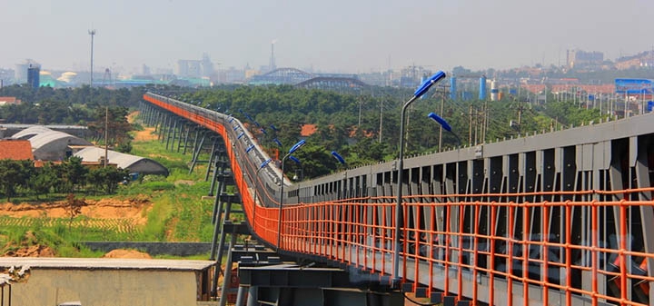由我公司设计、施工总承包的日照港岚山港区南作业区矿石输送大型管带机系统工程: 起点位于岚山港9#、11#泊位后方新回填区域,日照钢铁有限公司堆场为终点,管带机沿途经过市政道路、铁路、油罐区、货运站、公路、海滩、海产品交易市场、居民区、松树林等区域,输送机全长约为11公里,该系统由综合楼、堆场、取料机、三条管带机和三条普通带式输送机等组成,总投资近5亿元(预留复线)。其中管状带式输送机直径为ø500,带速为5m/s,带强为ST2500,单机 大驱动功率为4*1150KW,全长8.6公里;普通皮带机为B=1600,带速为3.15,带强为ST1600,全长为2.4公里,设计额定输送量为5500t/h,全年输送量为2000万吨。该系统自7月10日开始重载调试运行,经过2个多月的调试运行和试生产,系统运行稳定、可靠、控制 、操作方便,管带机全程无塌管、缩管,无撒料现象,系统输瞬时送能力达到7100吨/小时,累计输送铁矿石20万吨,系统各项技术指标达到设计和合同规定要求。2014年10月24日业主召集日照港集团质量监督检验站;日照港集团设备部、审计部、预算部、档案馆;重煤院;监理公司;施工单位等负责人和相关人员,对该系统工程进行竣工验收,认定该系统各单位工程已按合同及设计图纸施工完毕、符合设计及相关规范要求,主要使用功能达到设计要求,竣工资料基本齐全,该系统各单位工程质量合格,同意验收并交付使用。