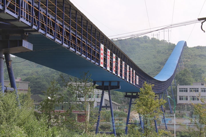 为解决化肥生产过程中磷石膏废料对乌江污染,延长渣场使用年限,降低能耗,贵阳中化开磷化肥有限公司主动找上门来,提出改磷石膏湿排为干排,采用管状带式输送机输送磷石膏渣的方案,为此,我公司通过技术攻关,解决了废料含水量高、腐蚀性大、附着性强造成运行过程中胶带易爆管、设备过早老化、胶带难清洗等难题,并 在国内产用低滚动摩擦阻力胶带和头尾双游动拉紧装置,成功研制完成了我国,乃至国际上 长的一条磷石膏管带机输送线,DG375×6.2km磷石膏输送管状带式输送机。