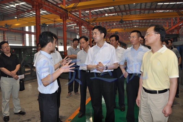 7月11日,副省长甘霖率省质监局局长刘云夏、省银监局局长王筠权、省政府办公厅副主任曹代学、省商务厅副厅长贾壮苗等莅临公司调研我市推进“两化”互动,提升城市竞争力的情况。市委书记雷洪金,市委副书记、市长彭琳,市委副书记谭豹,副市长刘任远,市长助理石涛等陪同调研。