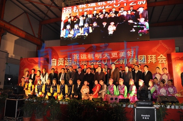 团拜会以公司2011年度工作总结及表彰大会拉开序幕,董事长吴友华首先向全体员工致以新春诚挚的问候和美好的祝福,同时总结过去、展望未来。他说:自贡运机正处于一个大展宏图、实现跨越式发展的时代,2012年是公司的质量效益年,我们要围绕2012年度目标责任书,抓住机遇,挖掘整合资源,争取在经营业绩上取得更大的突破。总经理何大利对公司4个优秀团队、10名优秀管理者、43名优秀员工进行了表彰,同时代表公司与董事长签订了2012年目标责任书,并鼓励全体员工齐心协力、共同实现自贡运机2012年的新跨越!