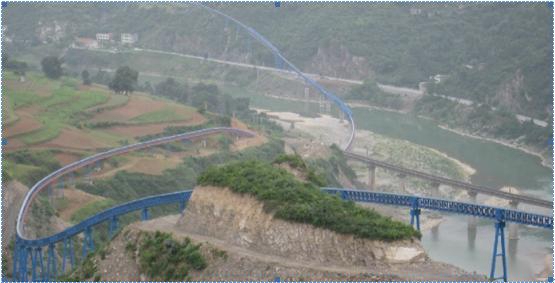 2)立面地形复杂,立面布置上有一个极为罕见的凹弧段,下运高度206M,下运倾角达18度,上运高度116M,上运运倾角达20度,且和水平转弯重叠、常规的带式输送机无法实现。
