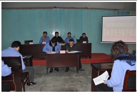 站在这新旧交替,辞旧迎新的起点,伴随着新春佳节的喜庆,运机集团公司于2011年2月12日在公司六会议室举行了运机集团公司营销线2011年目标责任书签字仪式,参加此次会议的人员有吴董事长、戴顾问、乔副董事长、何总经理、龚总、邓总、叶总、谢总及公司各相关部门 负责人及营销线全体将士。