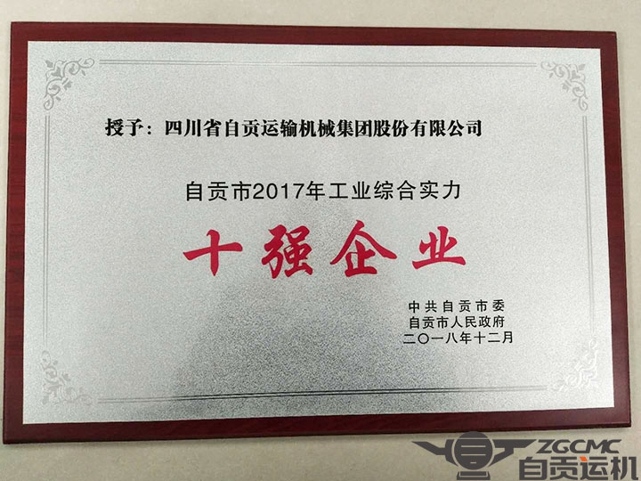 2018年12月14日,中共自贡市委、自贡市人民政府发文,对全市2017年工业综合实力十强企业进行授牌表彰,我公司喜获此殊荣。