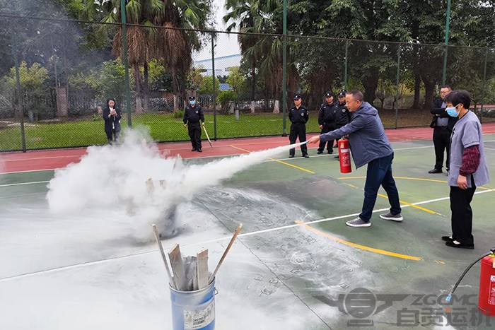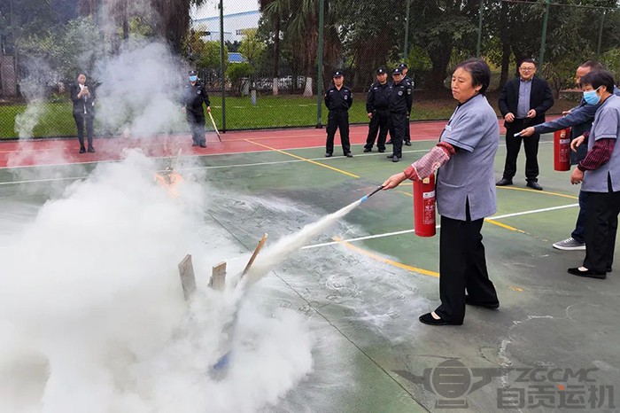在培训中,专家为大家展示干粉灭火器的使用方法,并介绍了一些常用的灭火器种类及使用方式。