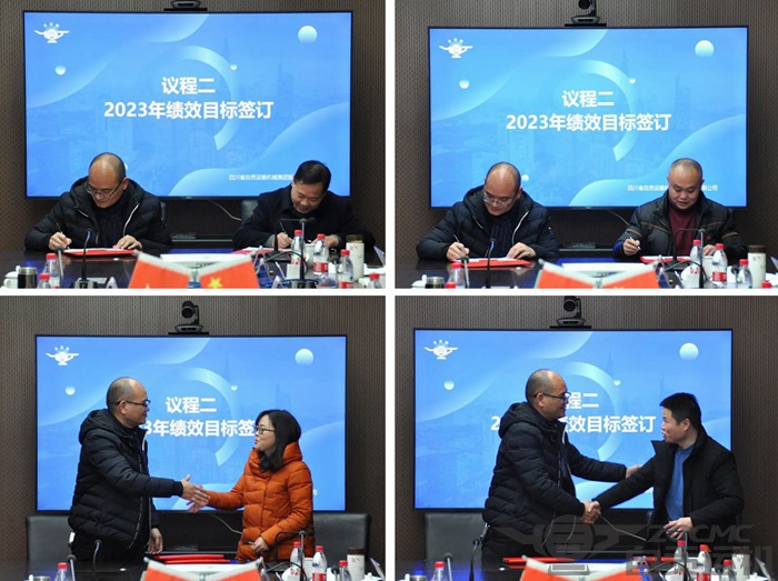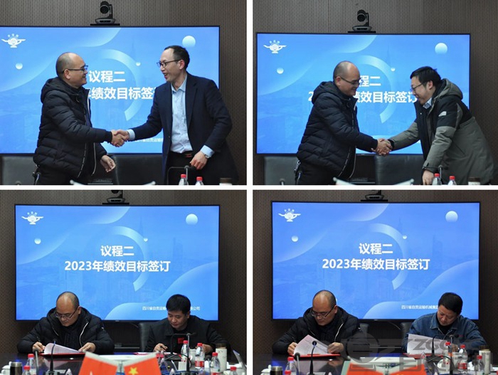 述职评议后,总经理吴正华与各部门高层签订了2023年绩效目标。
