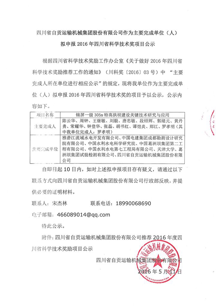 2016四川省科技进步奖公示