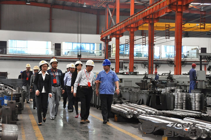 潘泽金等领导在总经理何大利、总工程师龚欣荣的陪同下深入生产现场视察,详细询问公司经济运行情况,管状带式输送机等重点产品的开发及市场情况等。
