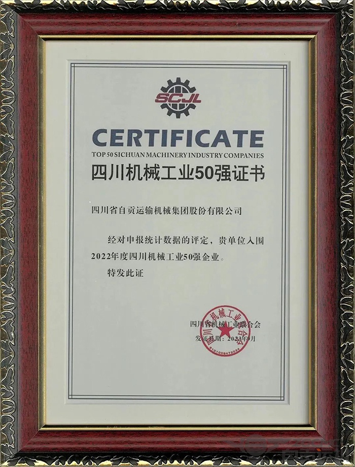 运机集团荣获“四川机械工业50强企业”。