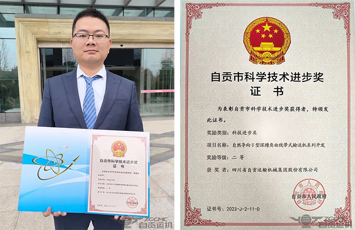 运机集团宋惜飞、龚欣荣、胡勇、张海军、陈智奎、熊文娟、牟宗魁、白光超团队的“自然导向U型深槽角曲线带式输送机系列开发”项目,荣获“2023自贡市科学进步奖”二等奖,这是对运机集团在科技创新方面的肯定和认可。