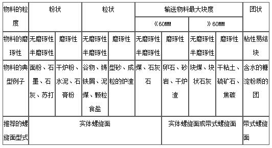 螺旋输送机有实体螺旋叶片和带式螺旋叶片两种形式,分别用S制法和D制法表示,另外还有叶片面型,但应用较少。螺旋叶片有左旋和右旋两种旋向。